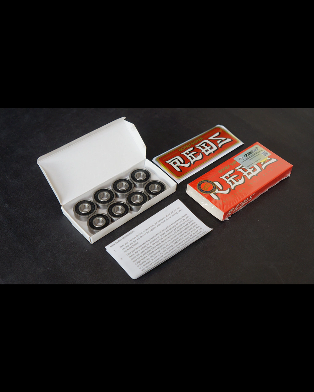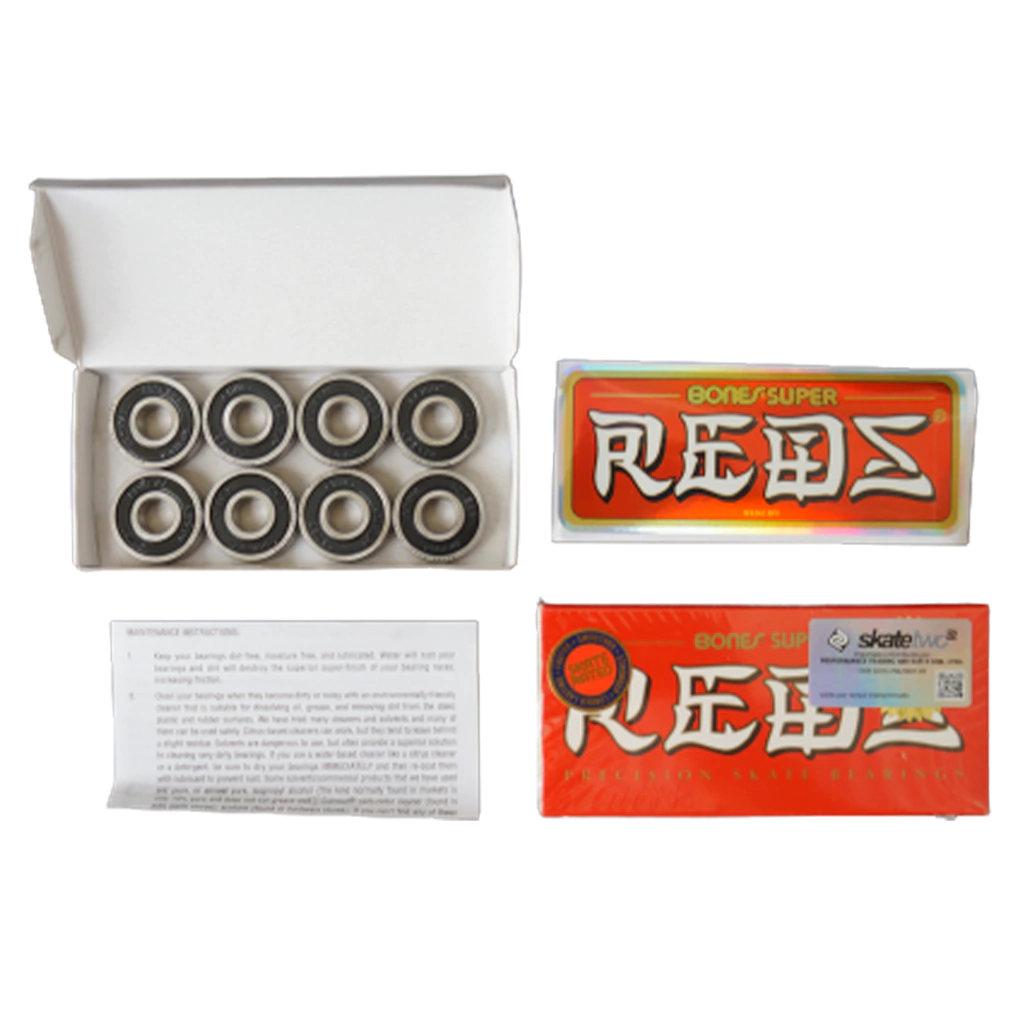 * Kit com 8 rolamentos Bones® Super REDS®, manual e 1 adesivo "Reds"