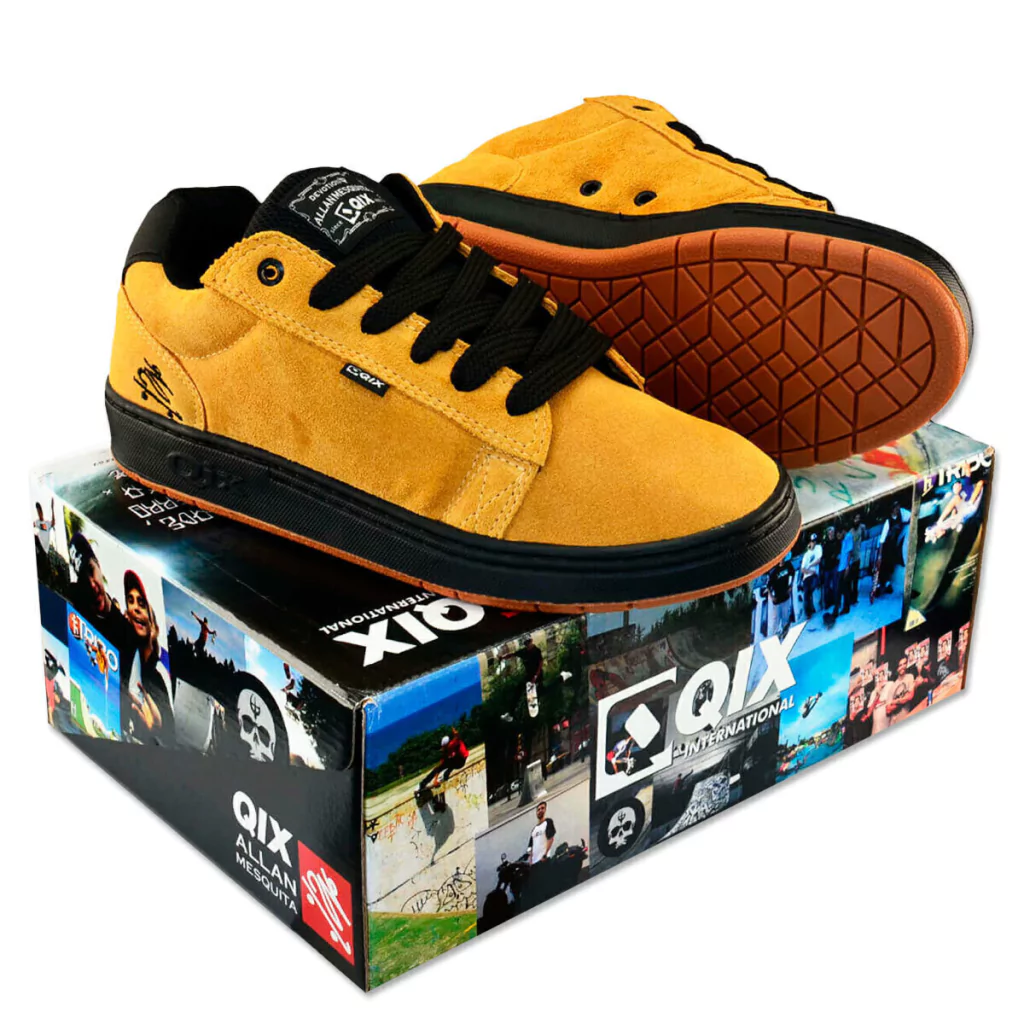 TÊNIS QIX SKATE CHORÃO PRO MODEL ALLAN MESQUITA SUEDE MOSTARDA E PRETO