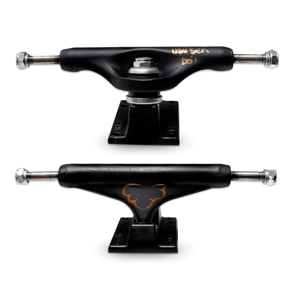 TRUCK DE SKATE ESSÊNCIA HOLLOW VAZADO SÓLIDO BLACK LOGO DOURADA