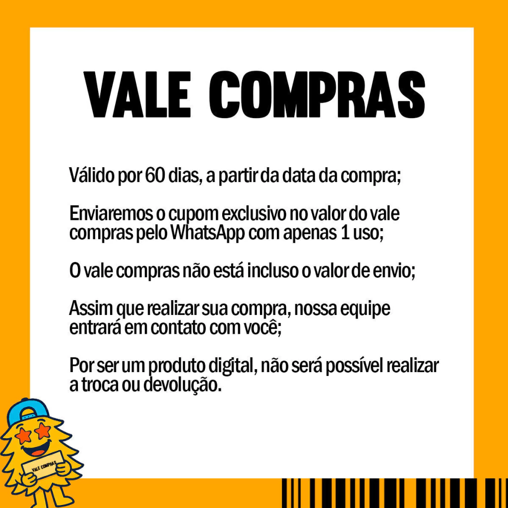 - Enviaremos o cupom exclusivo no valor do vale compras pelo WhatsApp com apenas 1 uso;