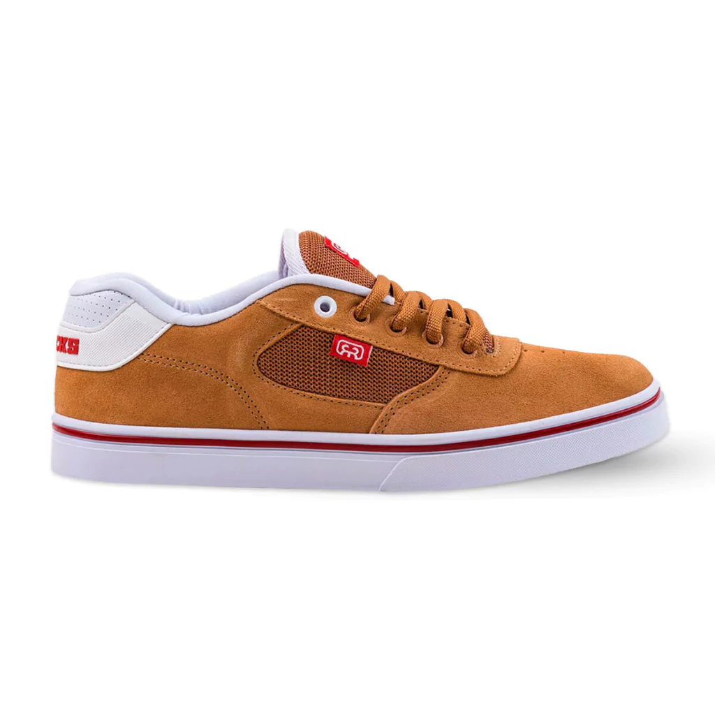 O tênis Hocks no modelo Flat Lite Infra Camel é desenvolvido em camurça natural, prensada e perfurada, mesclada com lona 100% algodão, com qualidade altamente resistente, contém um design feito para skatistas e todos que curtem esse estilo.